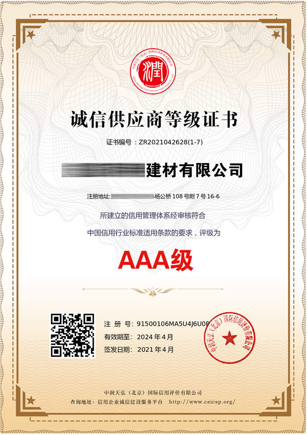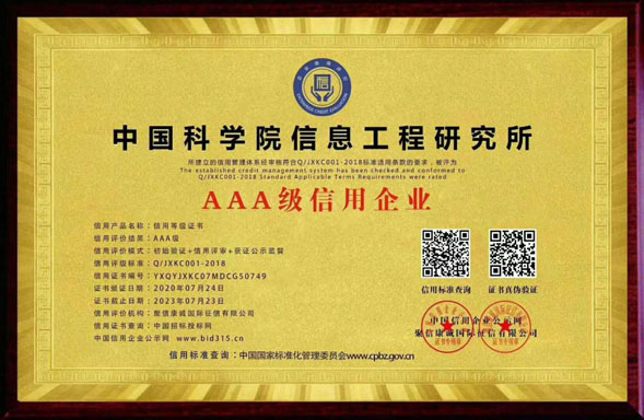 AAA企業(yè)信用評(píng)級(jí)網(wǎng)是從事企業(yè)認(rèn)證咨詢(xún)、各行業(yè)榮譽(yù)證書(shū)辦理的網(wǎng)站,認(rèn)證主要包含企業(yè)AAA信用等級(jí)證書(shū)、ISO體系認(rèn)證、服務(wù)認(rèn)證等認(rèn)證產(chǎn)品。出證快、價(jià)格優(yōu)。 企業(yè)AAA信用等級(jí)證書(shū)主要包含:AAA企業(yè)信用等級(jí)、AAA企業(yè)資信等級(jí)、AAA重合同守信用、AAA質(zhì)量服務(wù)誠(chéng)信企業(yè)、AAA誠(chéng)信經(jīng)營(yíng)示范單位、誠(chéng)信企業(yè)家、誠(chéng)信經(jīng)理人、AAA重質(zhì)量守信用、AAA重服務(wù)守信用、AAA誠(chéng)信供應(yīng)商等。我們將一如既往繼續(xù)努力,能夠和您合作是我們的榮幸!AAA企業(yè)信用評(píng)級(jí)網(wǎng)本著“誠(chéng)信、專(zhuān)業(yè)、優(yōu)質(zhì)、高效”的宗旨為廣大客戶(hù)提供全方位的認(rèn)證咨詢(xún)服務(wù),本公司愿與廣大的新老客戶(hù)真誠(chéng)合作、攜手共進(jìn)! |