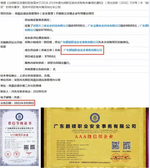 街道應(yīng)急辦開展粉塵涉爆企業(yè)專項整治項目中標:廣東鵬碩職業(yè)安全事務(wù)有限公司